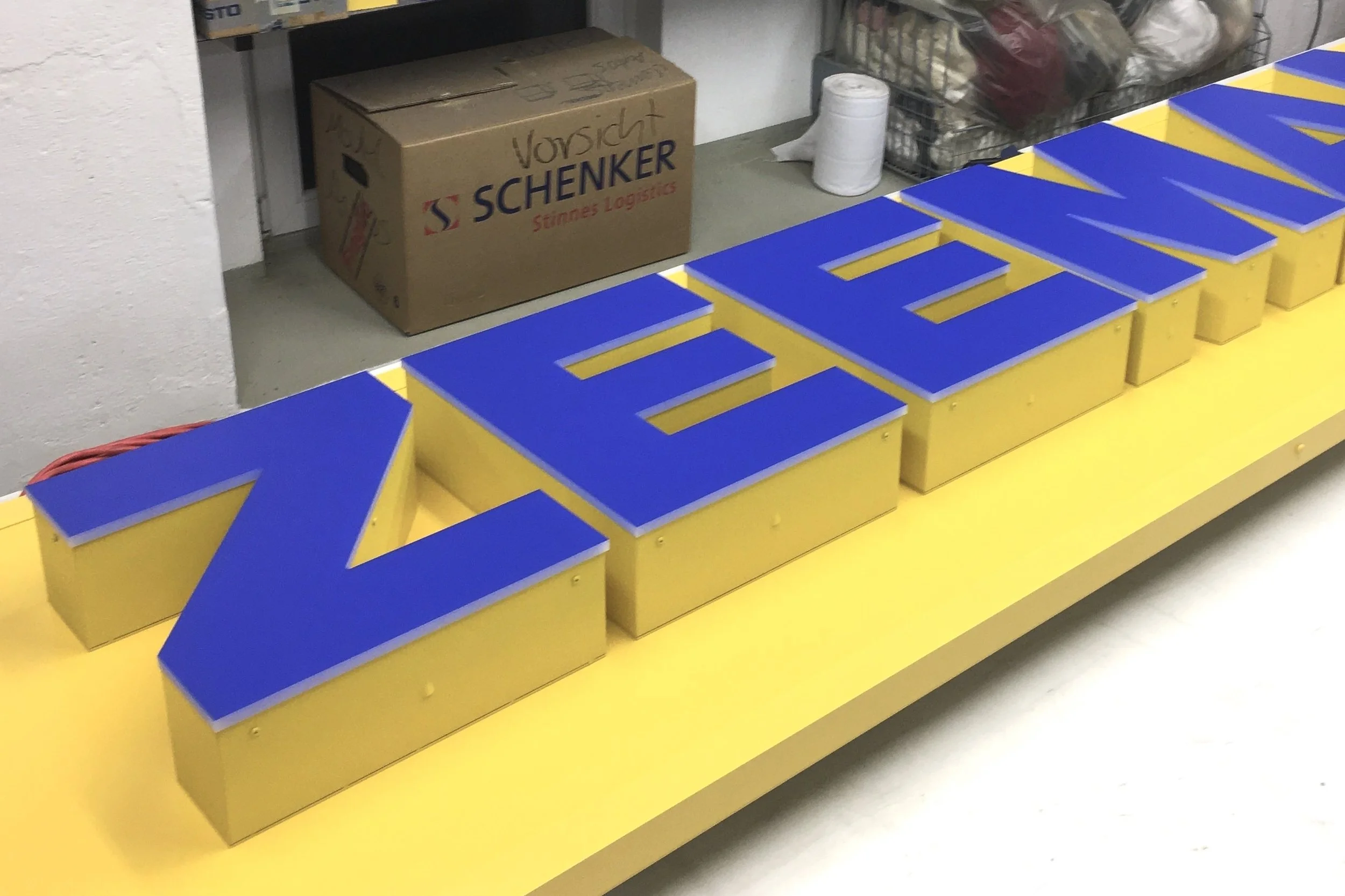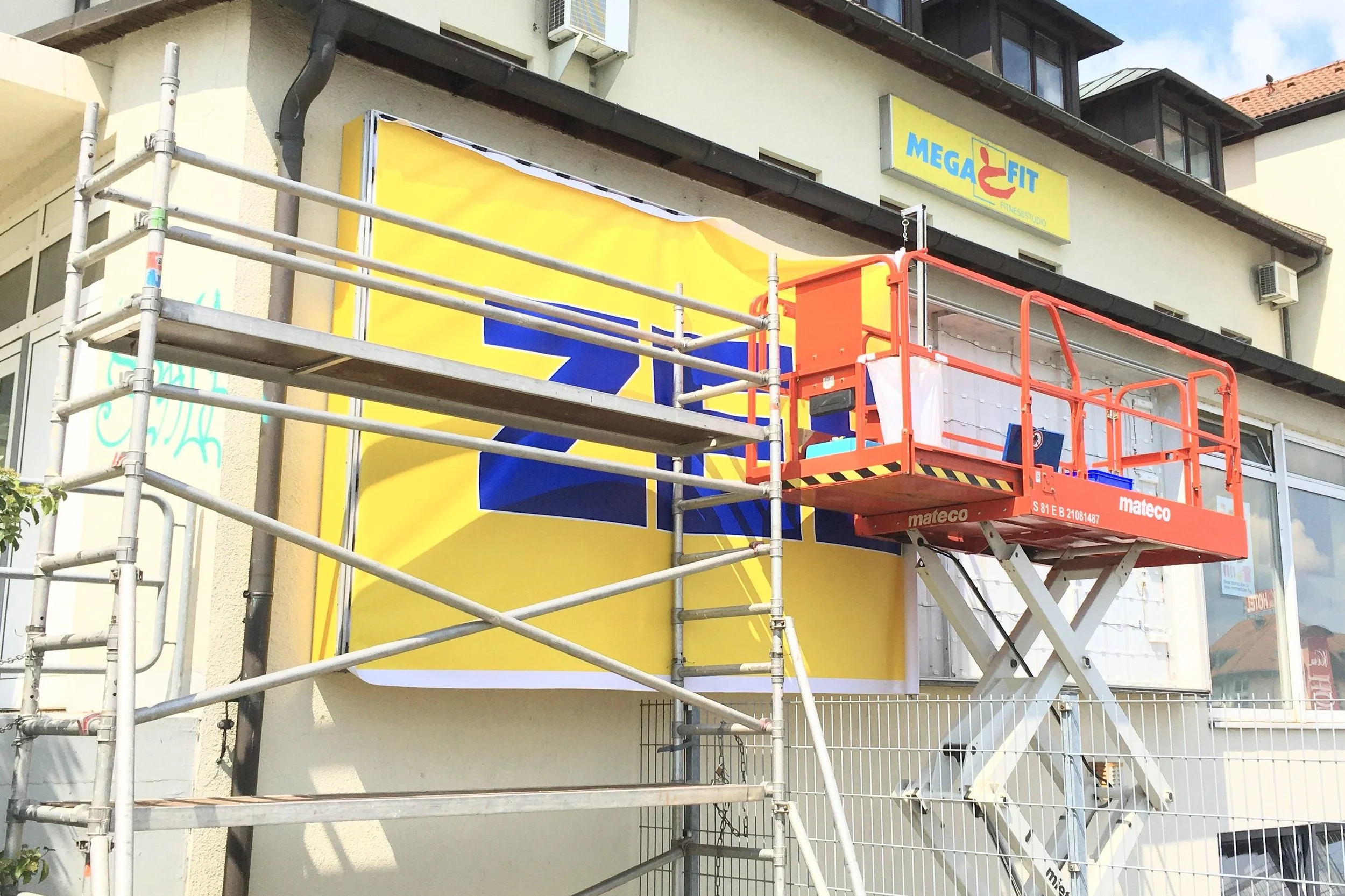 Zwischen 2017 und 2024 widmete ich rund die Hälfte meiner Arbeitszeit der Realisierung unterschiedlichster Außenwerbeanlagen. Auf Basis vorgegebener Branding-Richtlinien entwickelte ich maßgeschneiderte Lösungen und setzte diese anschließend als Werbeanlage um. Dreidimensionale Schriftzüge ließ ich durch spezialisierte Partnerbetriebe mittels CNC-Biegemaschinen fertigen. Neben gestalterischen und technischen Aspekten war dabei stets auch die Einhaltung baurechtlicher Vorgaben ein wichtiger Bestandteil des Prozesses sowie eine genaue Planung der Montage.