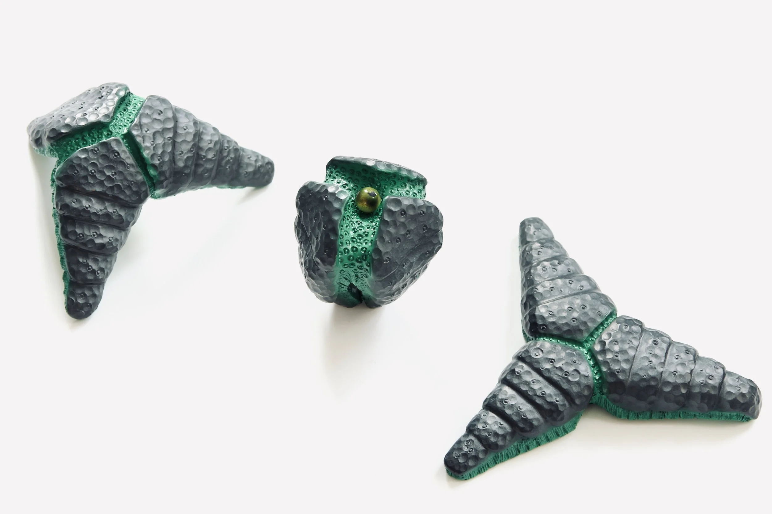 Forward-thinking and engaging with topics such as DNA manipulation is becoming increasingly important for designers. Cleanimal serves as a prototype for a concept involving microbiological applications in product design: an organism that lives in our home, cleans it, and provides information about harmful substances. Its anatomy is inspired by starfish, with tentacle-like feet that passively collect dust. The key feature is the generation of the digestive enzyme trypsin, which, through the creature’s excretions, communicates potential pollutant levels in the home environment.