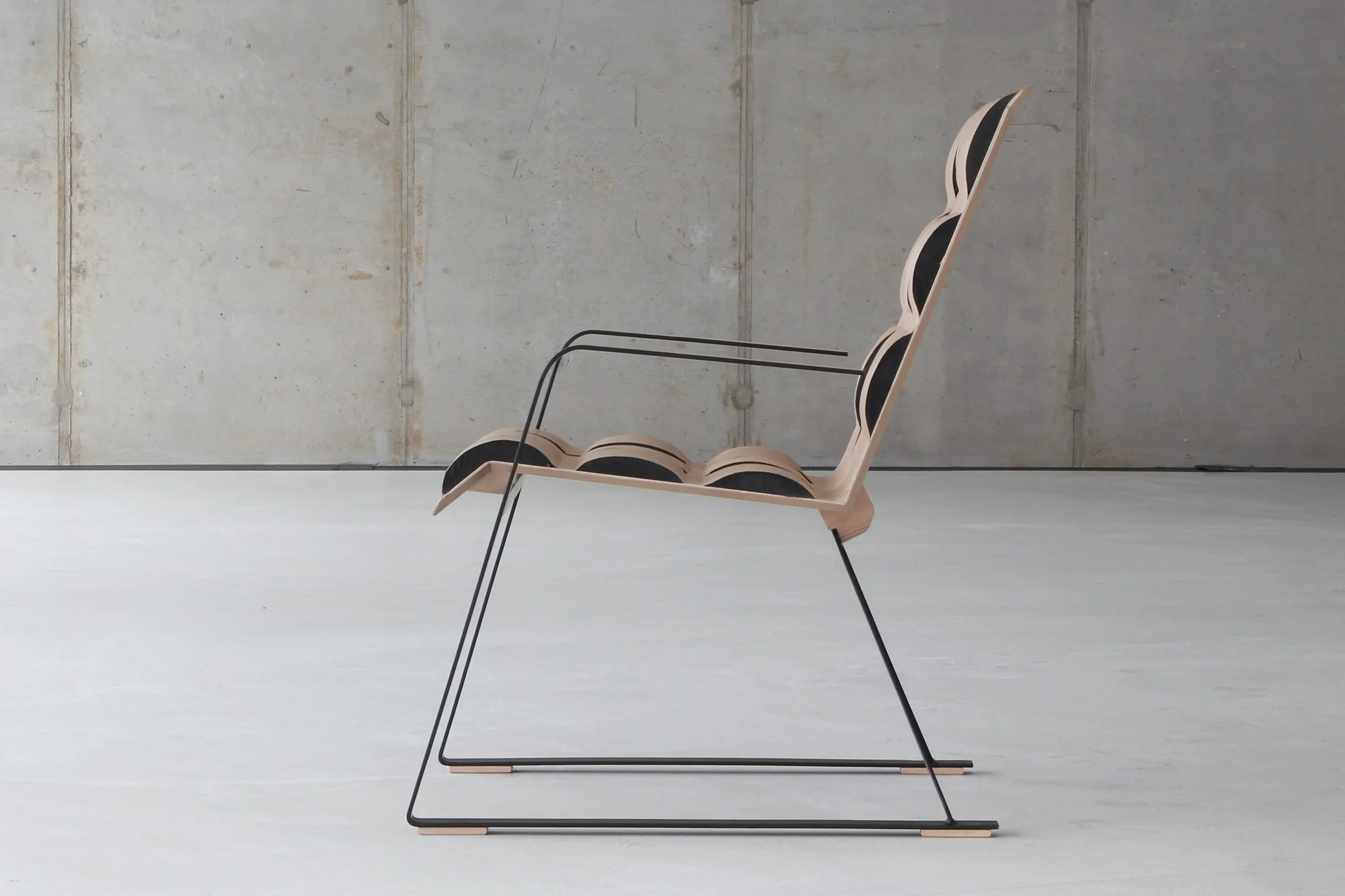 Over the last hundred years plywood become more economical compared to using timber. Apart from being more sturdy, having the option to shape it proved to be a huge advantage. Based on that 3D veneer was developed, which is a formable veneer for the industrial production of 3D molded plywood. To fully understand and experiment with the material I reconstructed the process. My goal was to keep the flexibility on top of the other characteristics. As a result shell and cover of my lounge chair are made from the exact same wood.