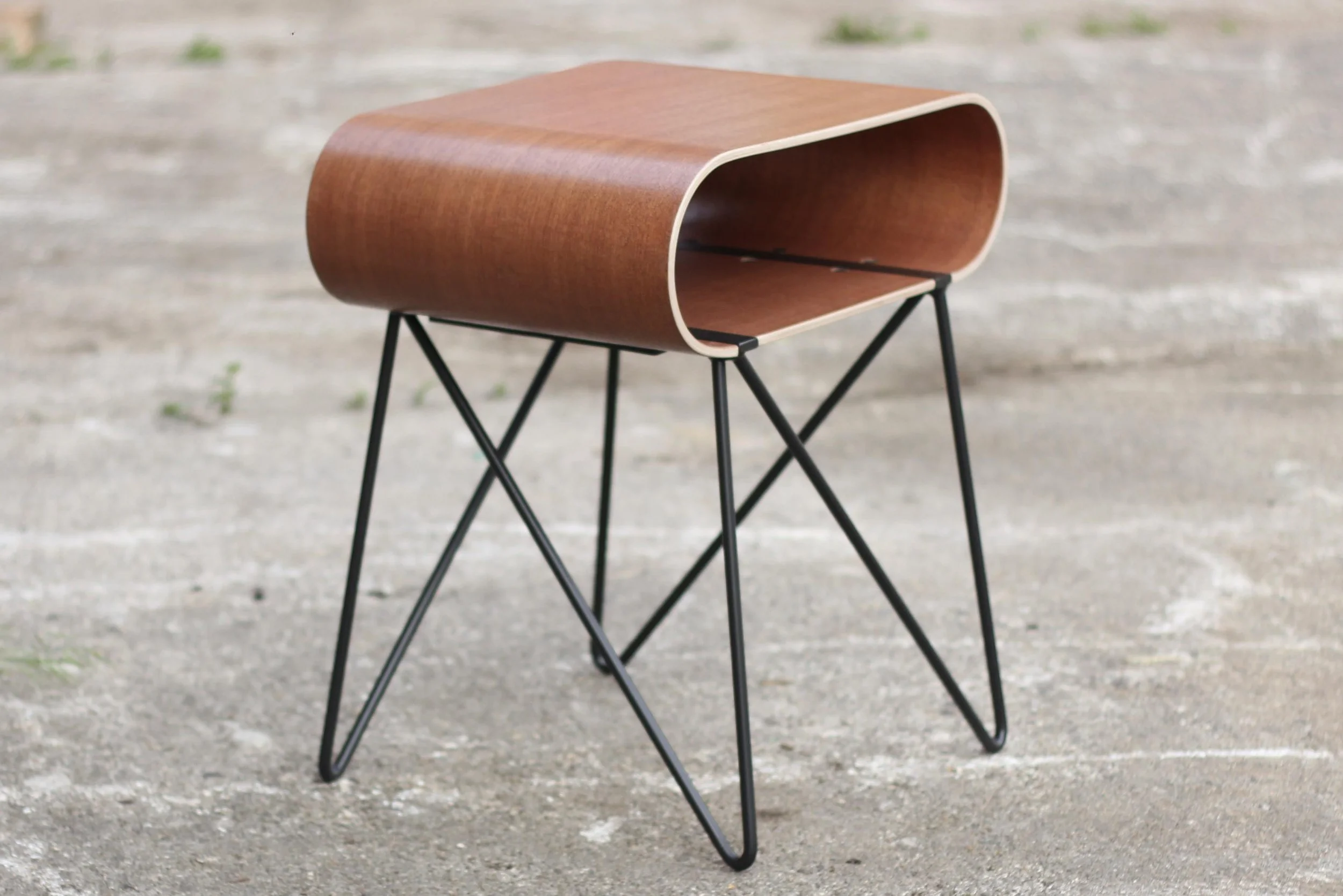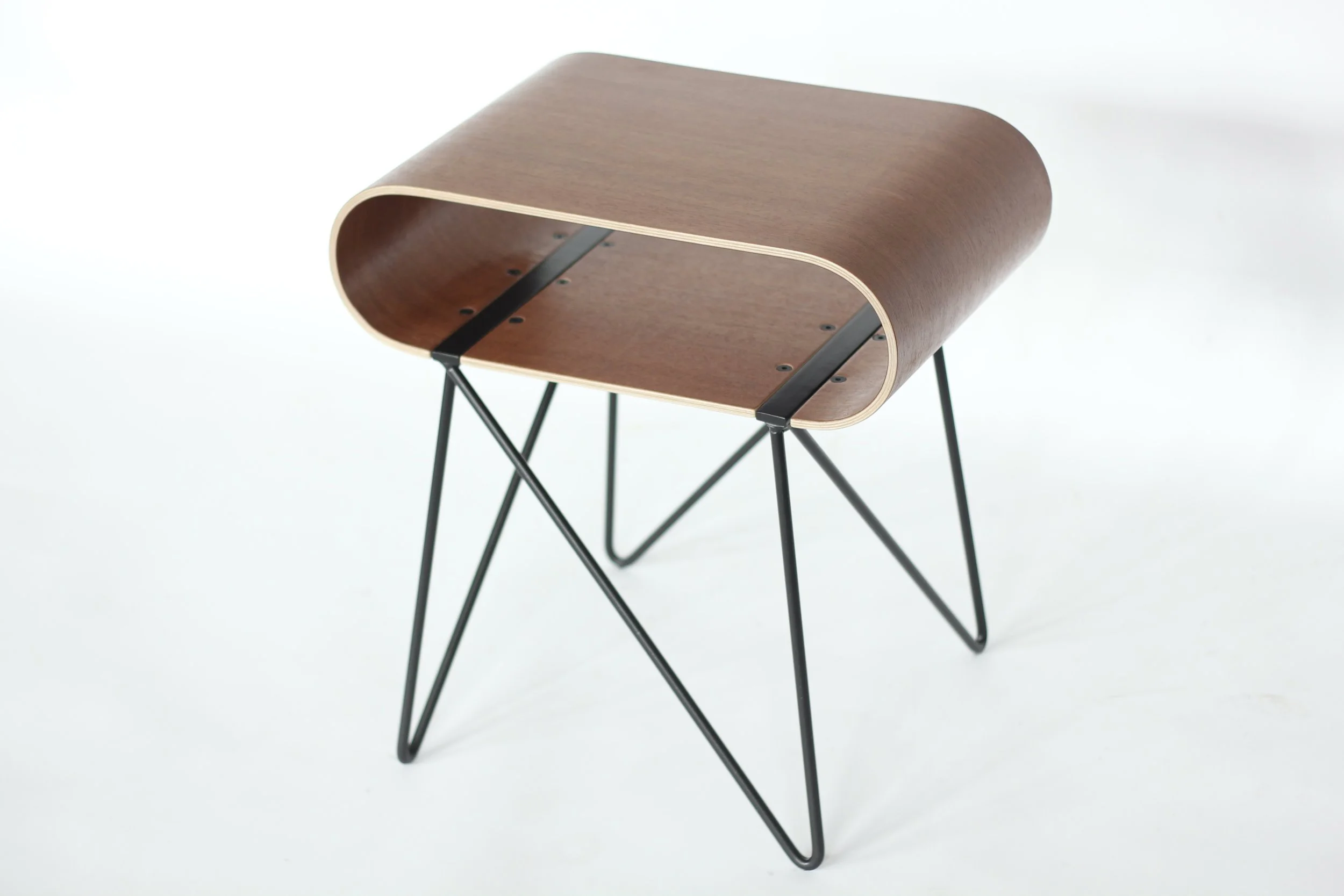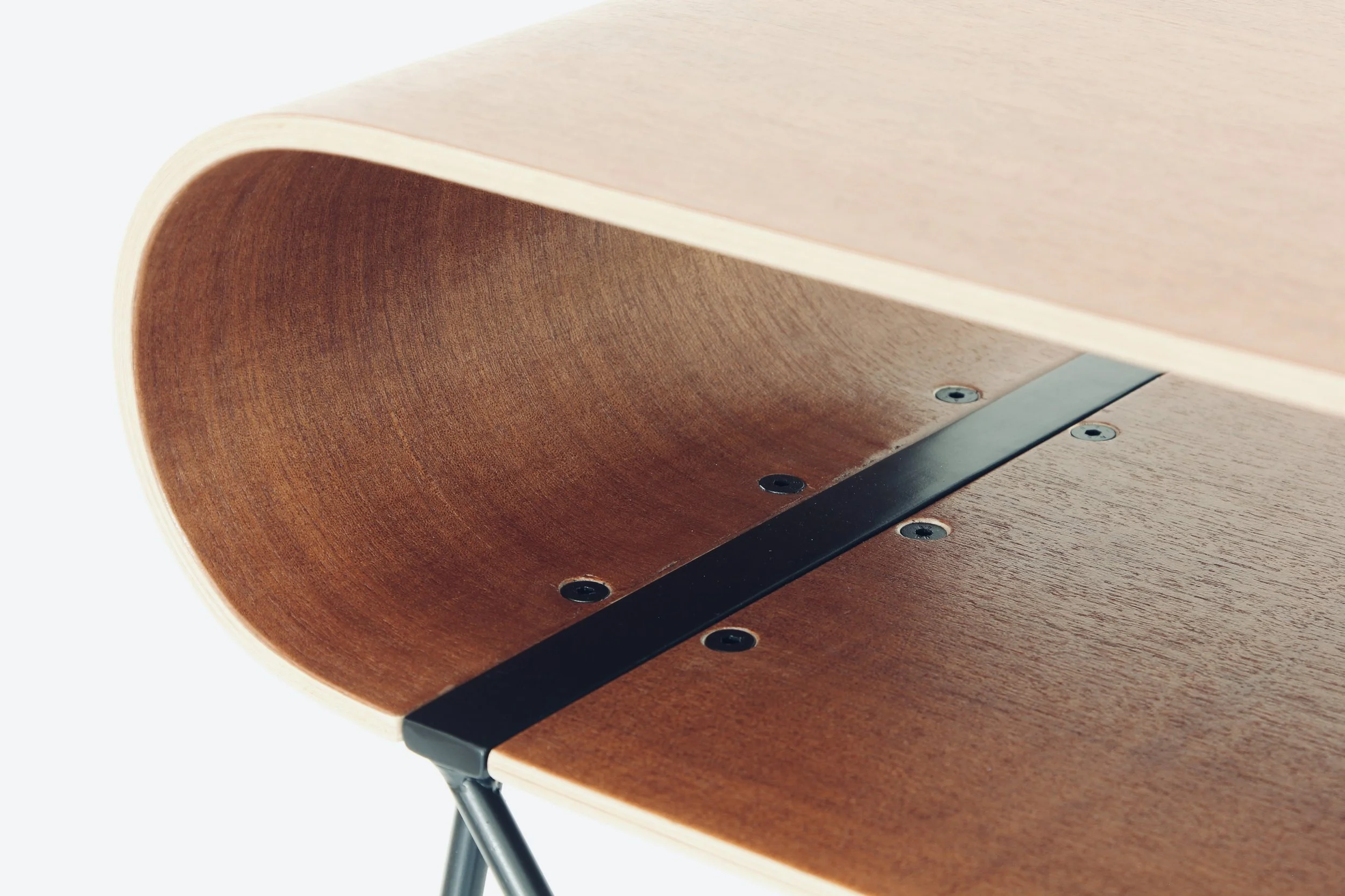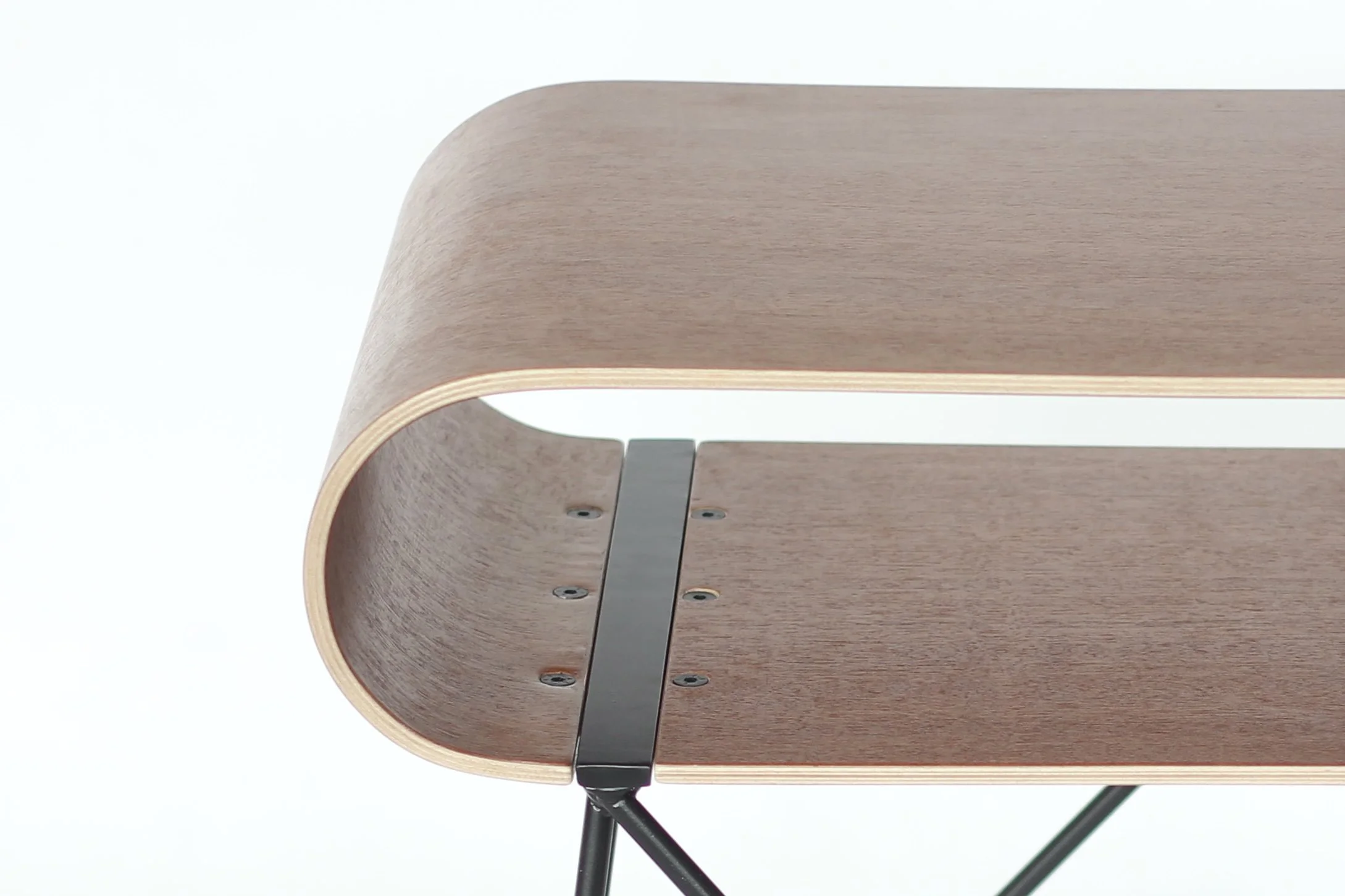 The side table “loov” is designed to visually complement a given interior, preferably one that highlights fine woods combined with black structural elements. Additionally, I wanted to include two storage surfaces and the option to use it as a stool. Small integrated rubber stoppers protect the floor and compensate for any unevenness.