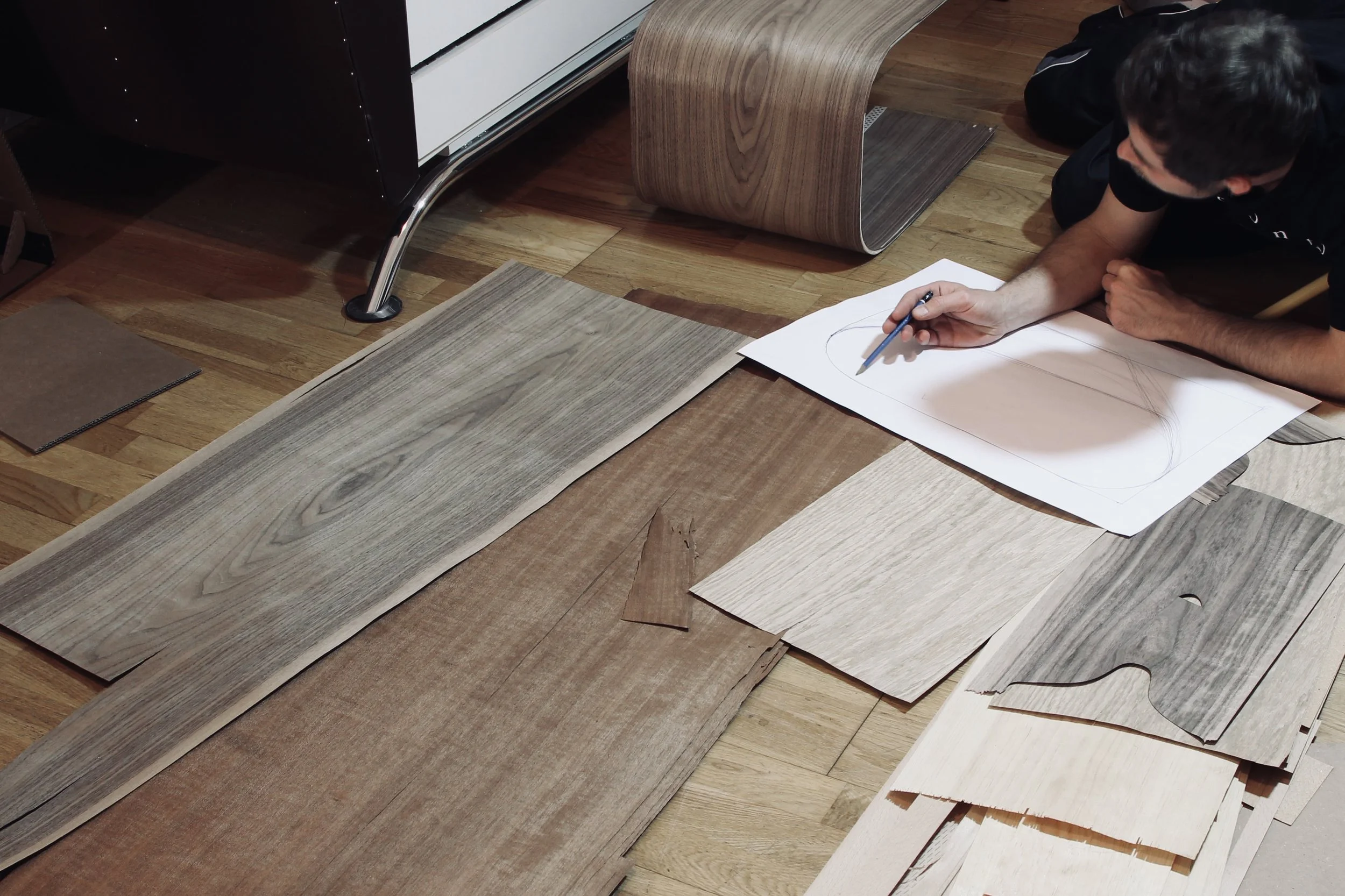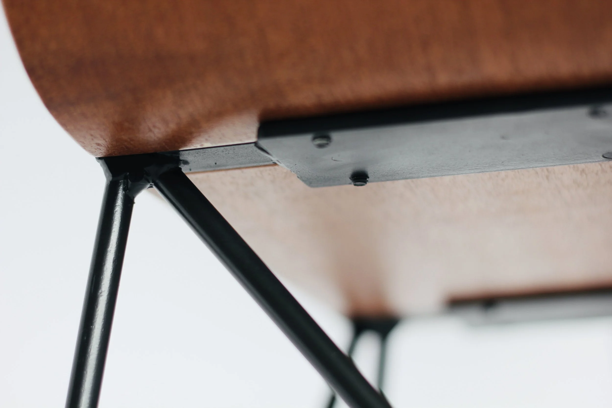 Der Beistelltisch „loov“ soll sich optisch an eine vorgegebene Einrichtung anpassen, welche vorzugsweise Edelhölzer hervorhebt in Kombination mit schwarzen, konstruktiven Fundamenten. Zudem wollte ich zwei Ablageflächen und die Möglichkeit, ihn als Hocker zu verwenden. Kleine eingelassene Gummistopfen schonen den Boden und gleichen dessen Unebenheiten aus.