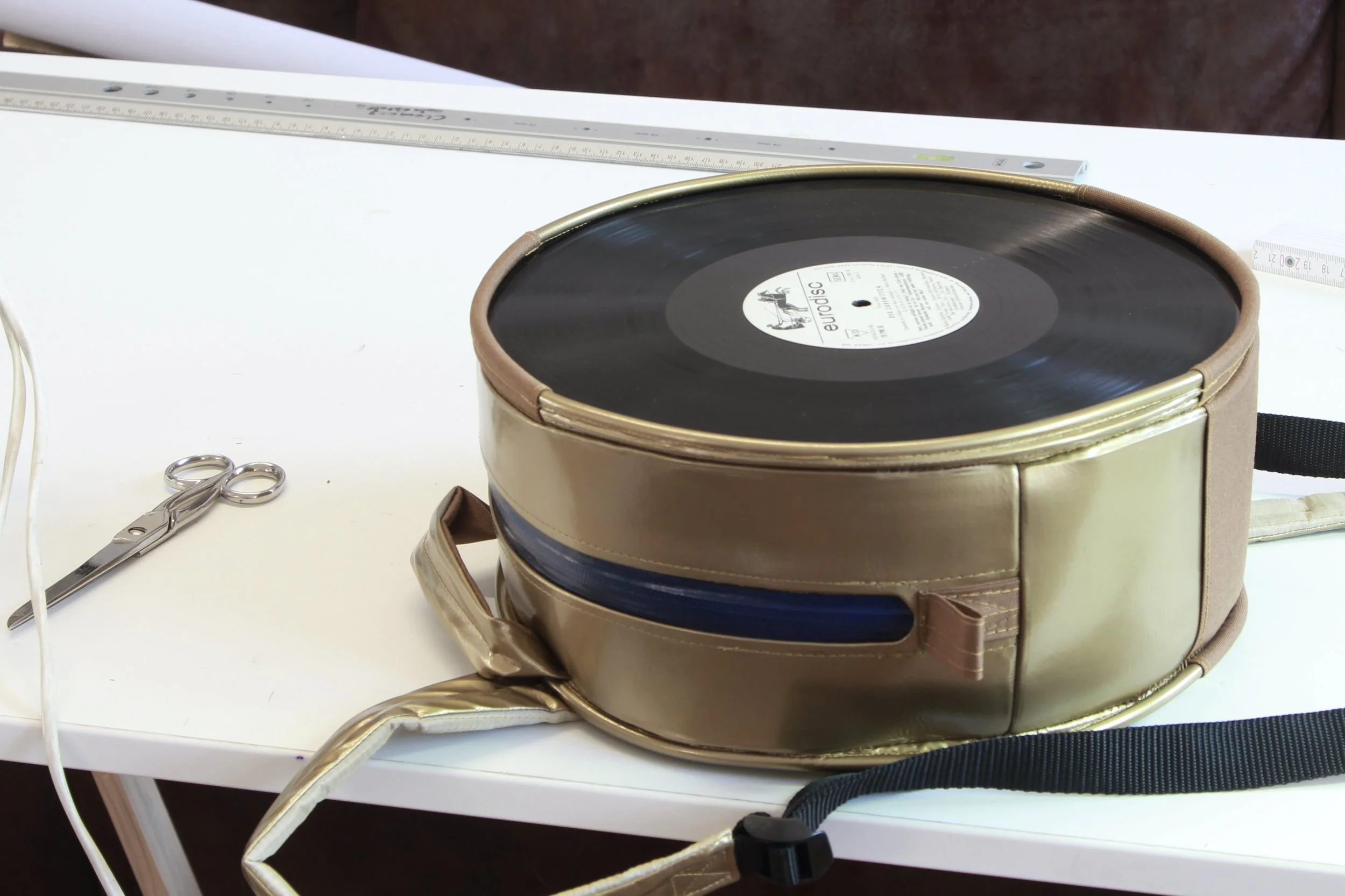 Music is one of the most soothing and important forms of artistic expression. It accompanies us daily and guides our consciousness. I wanted to integrate this into an everyday product. While browsing old records at a flea market in Berlin, the idea for Sputnik was born. I sewed this backpack, reinforcing its fabric by bonding special materials, shaping it like a sound chamber so that it could serve as a resonator for the speaker inside.
