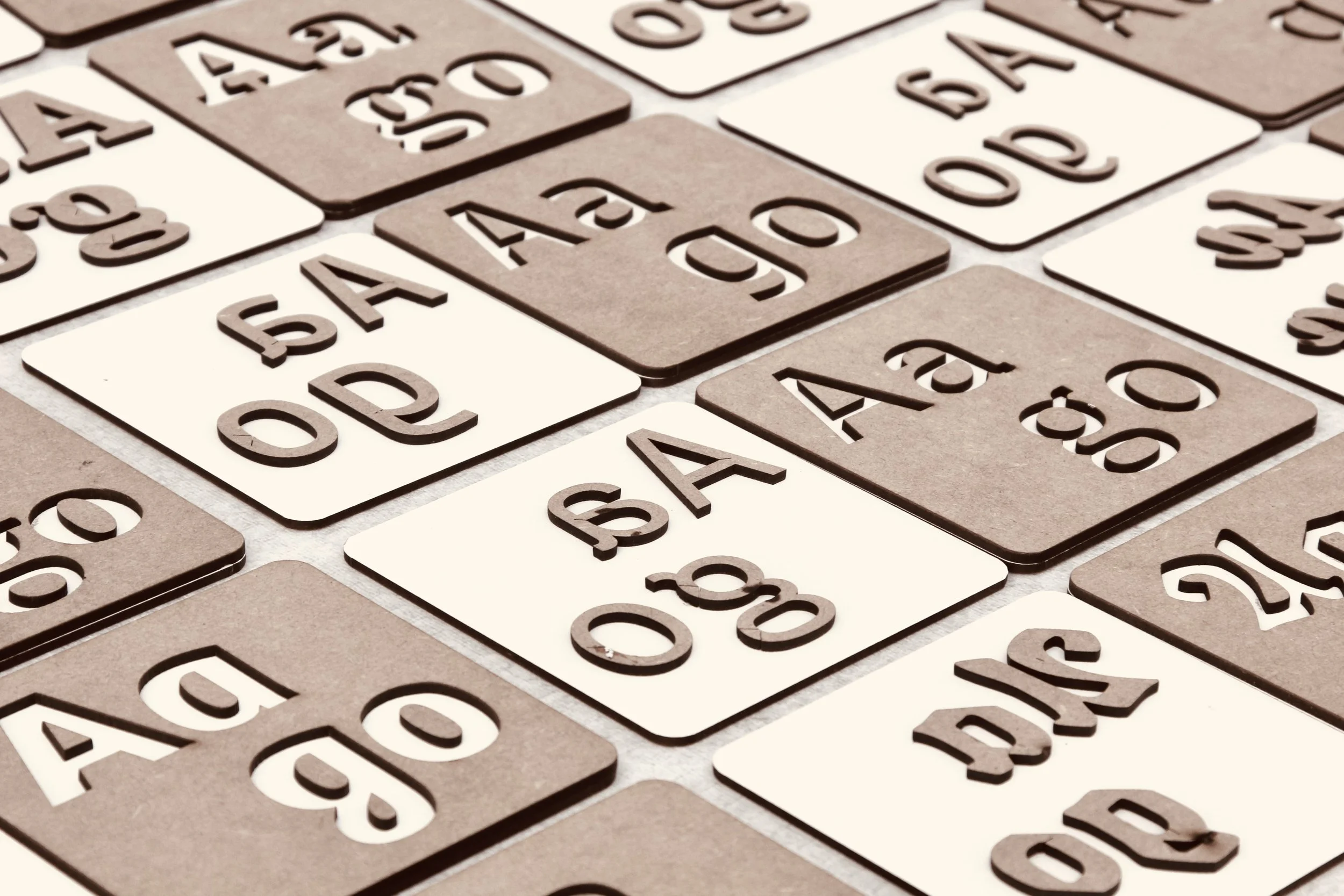 To sharpen our eye for typographic elements, we were given the theme “memory.” In order to turn it into a game, I looked for a way to make the results verifiable, since some of our typefaces differed only by subtle details. This led to the creation of a memory game in which each pair consists of a negatively and a positively laser-cut card that can be matched by fitting them together.